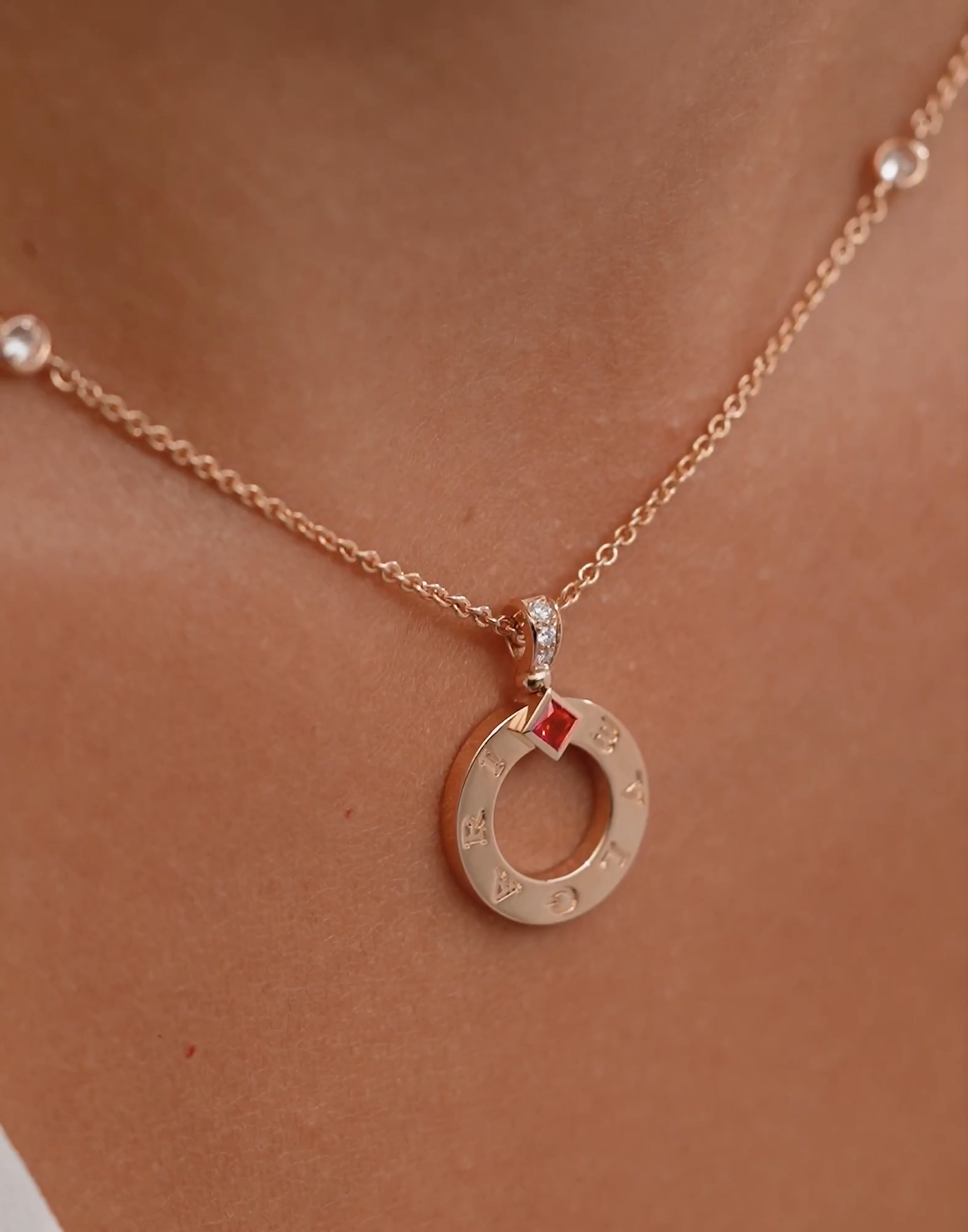A Special Edition dedicated to Lunar New Year, the Bvlgari Bvlgari 18 kt rose gold necklace translates the Roman roots of the brand into a timeless fusion of culture and modernity. Evoking the curved inscriptions on ancient Roman coins, the collection’s trademark logo is engraved on the round pendant as a distinctive element of design, while an exquisite carré ruby adds a festive touch to the jewel. Versatile and easy to wear, the necklace can be mixed and matched at wish.