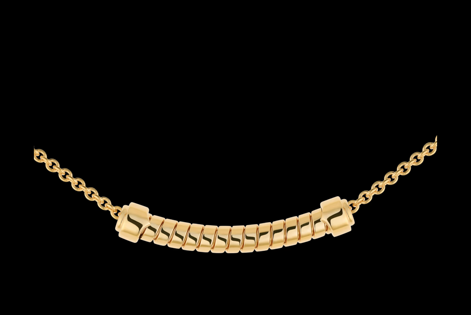 Elevating the jewelry technique cherished by the Roman Maison since the 1940s into an iconic collection, Bvlgari Tubogas intertwines the past and the future as a testament to Bvlgari’s drive for experimentation and its ability to transform precious metal into living matter. Born from the avant-garde blend of industrial design and superior artisanal mastery, the Bvlgari Tubogas necklace in plain 18 kt yellow gold embodies the line’s eternally contemporary style in its pure yet distinctive aesthetic.
