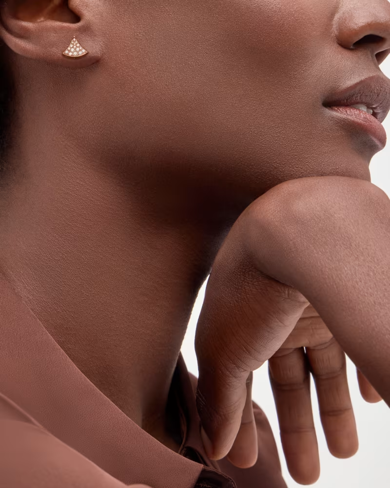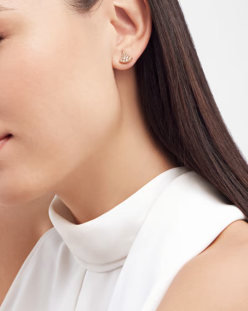 A refined expression of joyful femininity, the Divas’ Dream 18 kt rose gold earrings offer a sparkling and refined interpretation of the iconic fan-shaped motif. Deeply rooted in Bvlgari’s Roman heritage, the aesthetic signature of the collection is rendered through a delicate design, artfully set with pavé diamonds. Graceful and timeless, the creation is an ode to spontaneous beauty.
