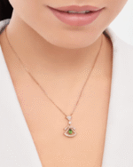 Divas’ Dream 18 kt rose gold necklace with a pear-shaped green tourmaline and brilliant-cut diamonds.