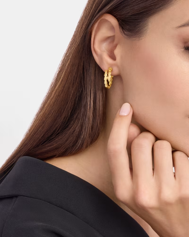 With their signature blend of pure aesthetics, enveloping shapes and charismatic flair, the Serpenti Viper 18 kt yellow gold earrings are an essential interpretation of Bvlgari’s icon of endless metamorphosis. Capturing the powerful and ever-evolving nature of the mythical serpent, the magnetic jewelry creations inspire to embrace change as a source of strength and self-confidence. Easy to mix and match, the earrings offer endless styling options, embodying the collection’s versatile spirit.