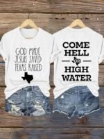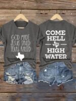 Be the first to review “Retro God Made Jesus Saved Texas Raised Come Hell Or High Water Print T-Shirt” Cancel reply