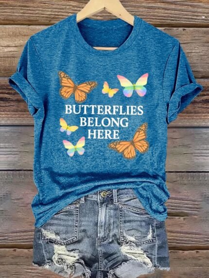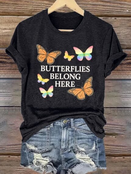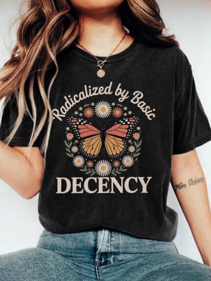 Women’s Fashion Casual Radicalized By Basic Decency Butterfly Oil Painting T-Shirt
