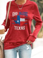 Retro Texas Strong God Bless Texas Print Sweatshirt