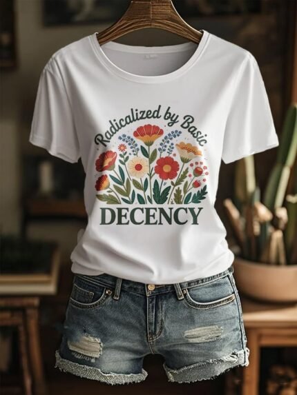 Women’s Fashionable And Casual Radicalized By Basic Decency Floral T-Shirt