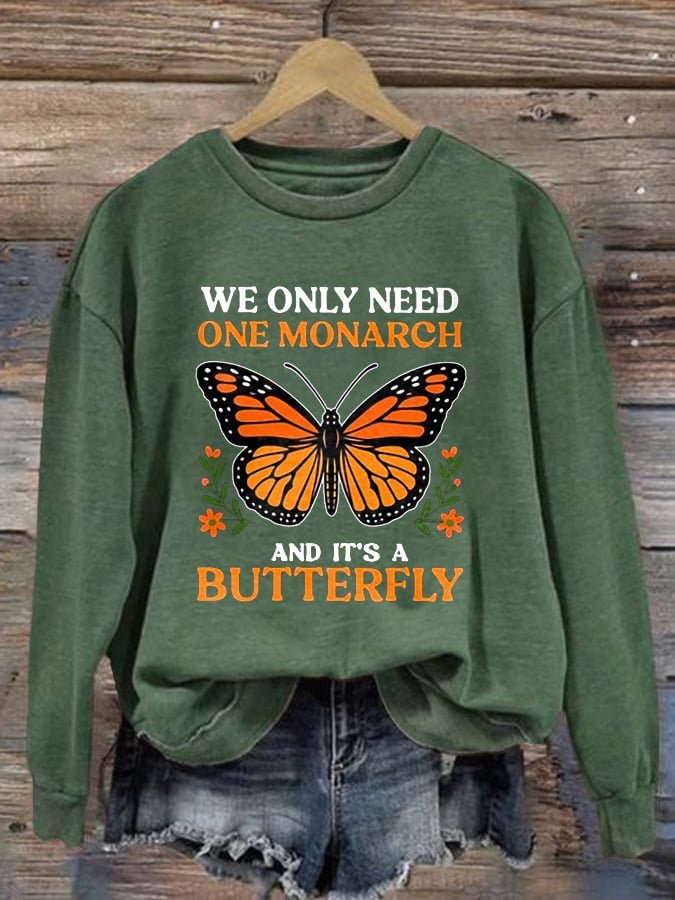 Retro We Only Need One Monarch And It’s A Butterfly Print Sweatshirt