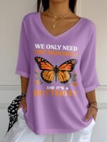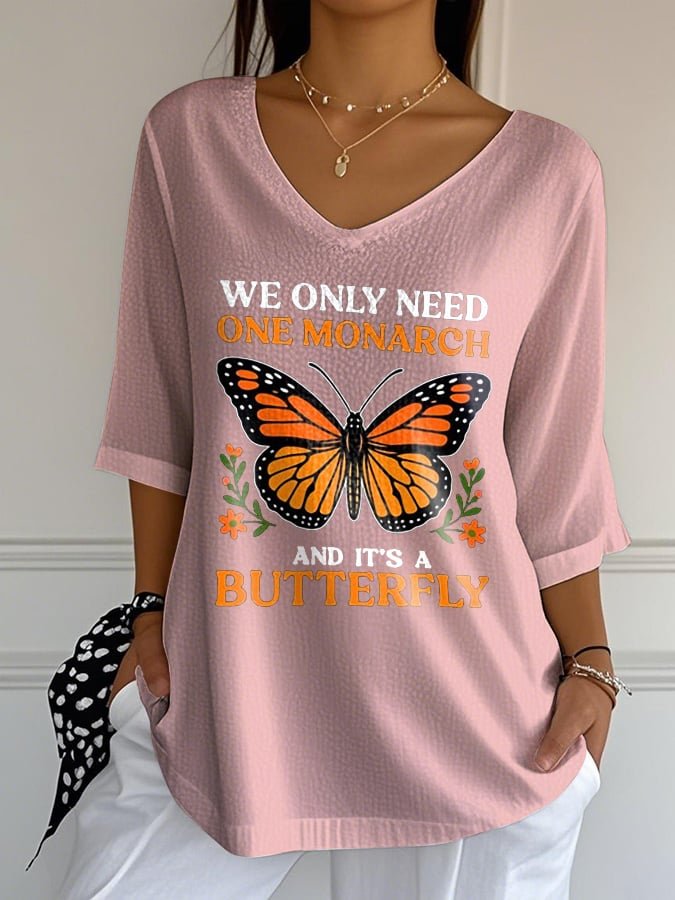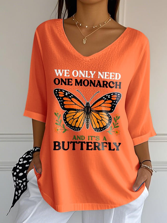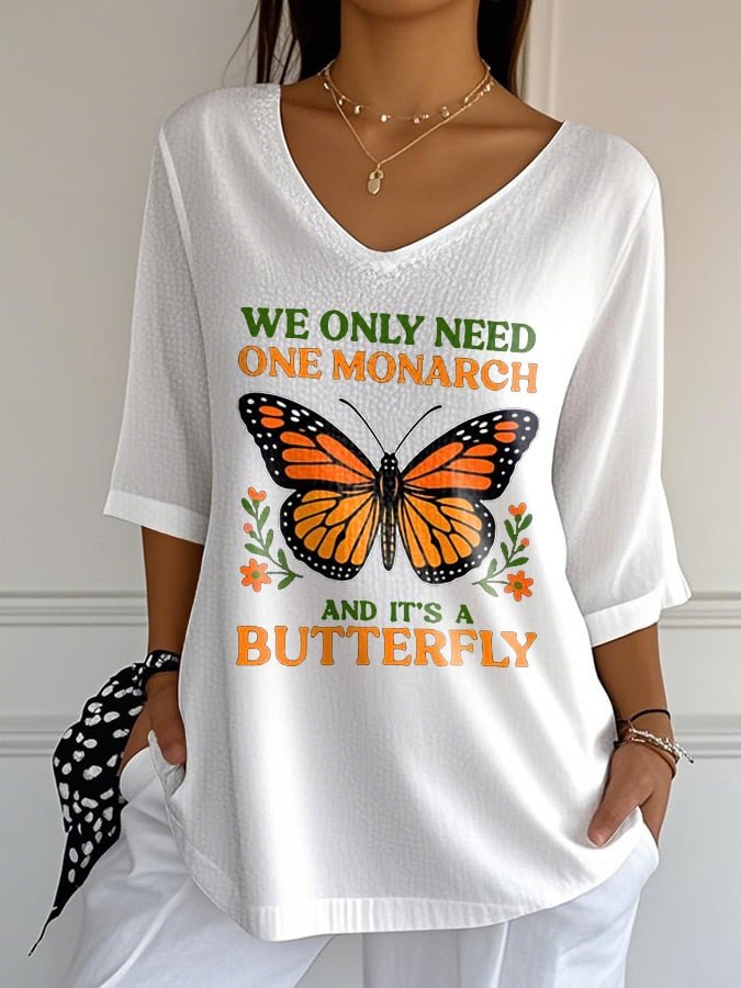 V-Neck Retro We Only Need One Monarch And It’s A Butterfly Print T-Shirt