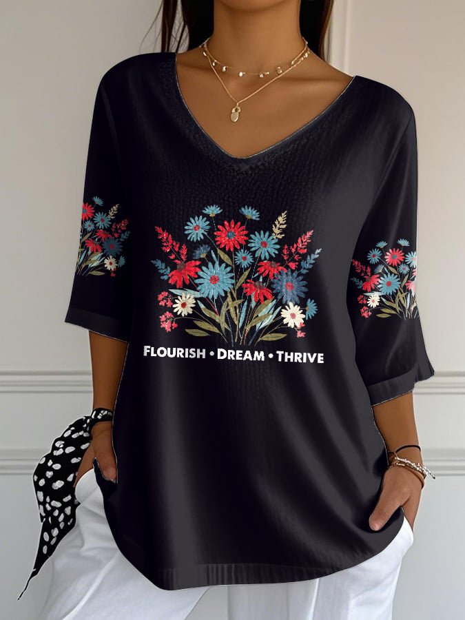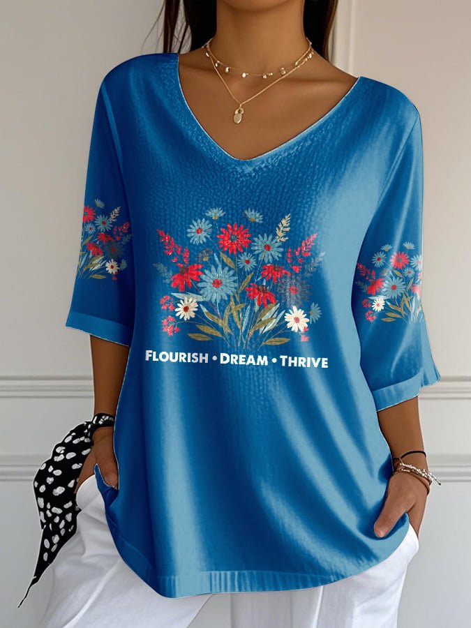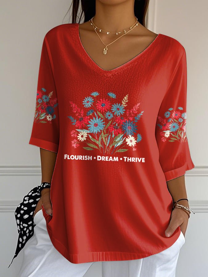 Women’s Fashion Casual Floral FDT Bubble Wrinkle Cotton and Linen Top