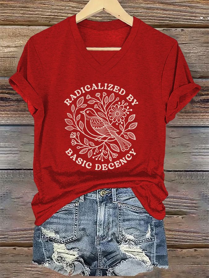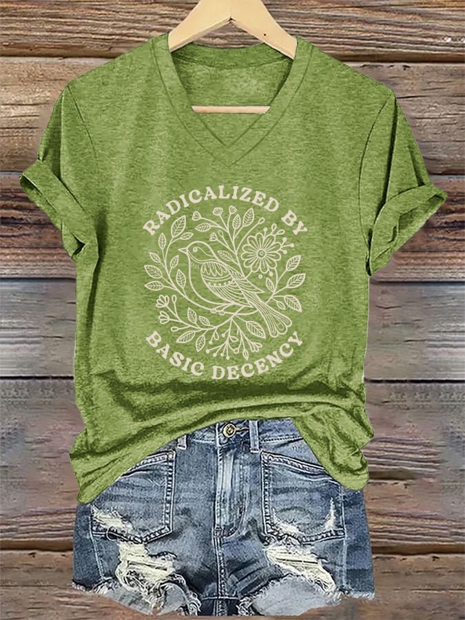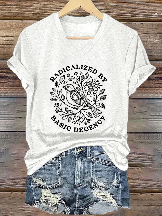 Women’s Fashion Casual Radicalized By Basic Decency Floral Bird T-Shirt